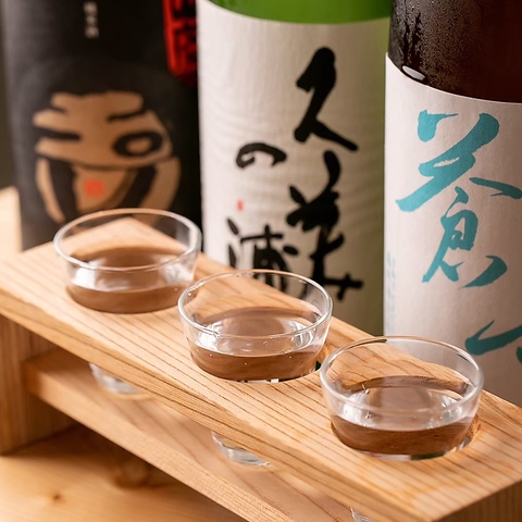 地酒飲み比べ三種!京都の地酒を飲み比べでもお楽しみいただけます。すっきり飲みやすいものから、日本酒らしいパンチのあるお酒まで、種類の異なる3種をお楽しみいただけます。内容は季節によって異なります。