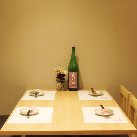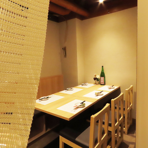 完全個室のこちらのテーブル席。落ち着いた空間なので、接待など特別なご宴席にもお気軽にご利用くださいませ。最大14名様まで承っております。