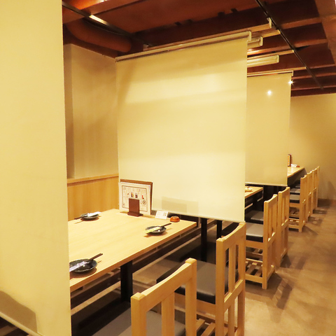 当店は全席個室・半個室風となっております!写真はカーテンで仕切っている掘りごたつの半個室となります。周りを気にせず当店自慢のメニューをお楽しみください。