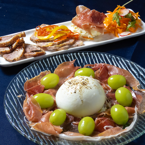 【女子会】季節フルーツのブラータチーズサラダ・お肉といくらの月見パスタ他全8品120分飲み放題付き4500円