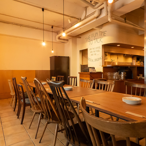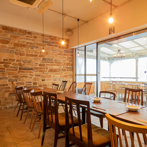 あたたかみのあるレンガの壁と木製テーブルが心地よい雰囲気の店内でゆったりとした時間がお過ごしいただけます。オープンキッチンからいい香りが漂ってきます。落ち着いた雰囲気のお席でごゆっくりとお寛ぎいただきながら、お食事をお楽しみいただけます。ご友人とのご会食やデートにも最適ですので、お気軽にご利用下さい