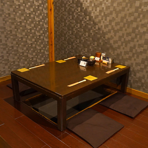| 掘りごたつ個室 | 6名様×2 | 予約必須の大人気の掘り炬燵式個室。最大6名様迄収容可能です。小上がりの雰囲気抜群の個室は接待や忘年会、新年会等各種シーンでご活用頂けます。 |