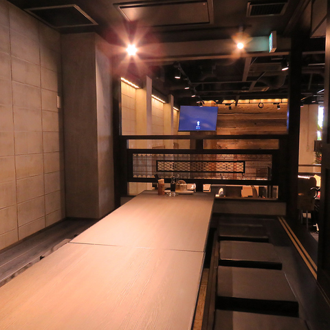 広々とした店内は和モダンな雰囲気のカジュアル大衆居酒屋スタイル。大型モニターも設置でスポーツ観戦などもお楽しみいただけます!宴会の貸し切り営業や、少人数でのご予約もお受けいたしております。1名様での来店も大歓迎!