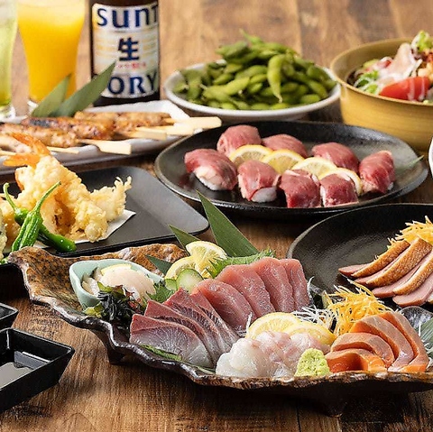 《予算に合わせて選べるコース》飲み放題付コースを多数ご用意しています。●2時間3,000円~●3時間4,000円~と、お客様の利用シーン・予算に合わせてお選びいただけます。肉寿司・お造り・串焼き・海鮮ちらし寿司等、当店自慢の料理を各種宴会に便利なコースで存分にお楽しみください。ご予約お待ちております♪
