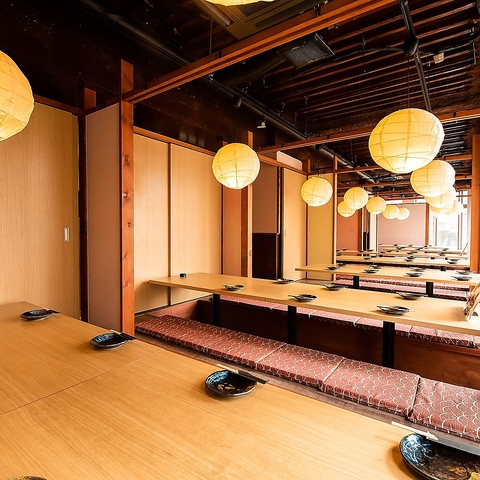 【最大宴会137名様収容可能】大型宴会必見!脚をのばしてゆったりできる掘りごたつ個室。貸切は80名様~137名様まで承っております◎会社宴会やイベント打ち上げなど、団体様のご利用大歓迎♪様々なシーンに対応いたしますので、ご予算・人数など気軽にご相談ください。広々とした開放的な空間で、大切な方と特別な時間を。