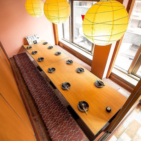 (8~12名様×9卓)お洒落な照明と窓から見える景色を楽しみながら、いろどり自慢のお料理をお楽しみください。8名様~最大12名様までご利用いただける掘りごたつ個室を9卓ご用意。壁と扉に囲まれた完全個室でご案内しておりますので、自分たちだけのプライベートな空間で、ゆったりとした時間をどうぞ!