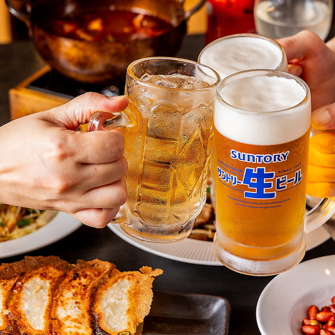 香辛料をしっかりきかせ、油と強火で旨味を表現したものが中華料理の特徴。冬でも冷たく冷えたビールやハイボールなどの炭酸系のドリンクをひと口飲むと、口の中がさっぱりリセットされ、またさらに食欲が増した気分で食事を始められます。中国果実酒や種類豊富なサワーも人気です。