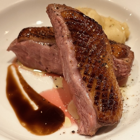 マグレ産の鴨を使用し、香り高い、しっとりしたお肉をご堪能いただけます。バルサミコとの相性は抜群!