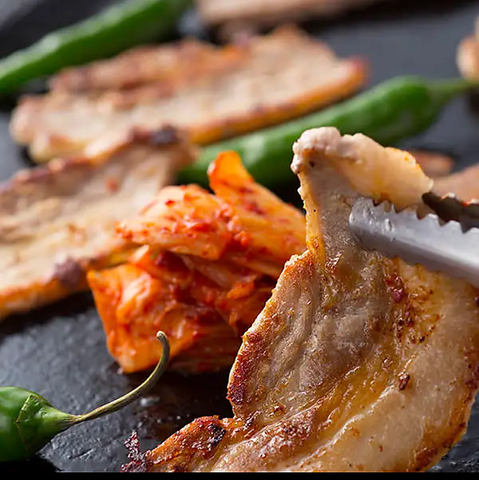 サムギョプサル食べ放題をさまざまなプランでご用意!サムギョプサル以外にも、牛ハラミ、豚の希少部位(豚タン、豚トロ)、とり肉、ウインナーなど他のお肉も!メニューページを是非チェックしてみてください。