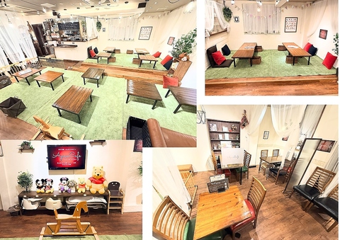 落ち着いた雰囲気の店内は、赤ちゃんとママに居心地の良い〈小上がりエリア〉と、お食事や歓談が楽しめる〈テーブルエリア〉に分かれています。赤ちゃん連れには、離乳食の持ち込みOK! その他、おむつ替え台・バンボ・バウンサーなどもご用意。WI-FI・電源コンセントあり。