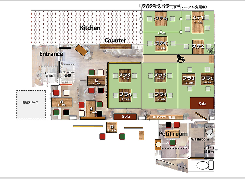 | 備考 | 介助犬のご利用は可能です。詳細は店舗にご相談ください。 |