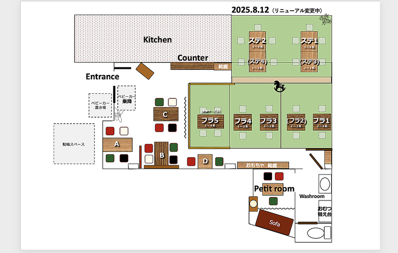 | お子様連れ | お子様連れ歓迎 :特に赤ちゃん連れ歓迎です。 |