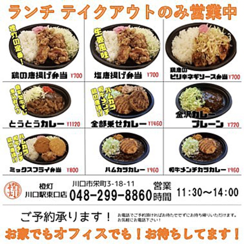 橙灯自慢の唐揚げがランチに登場♪ごはん味噌汁小鉢ドリンクがついて800円!大人気のカレーランチもご用意ございます♪シンプルながらも旨味あふれる唐揚げに仕上げました。1個役50gと大ぶりにカットしたお肉はとってもジューシーで食べごたえ抜群です♪