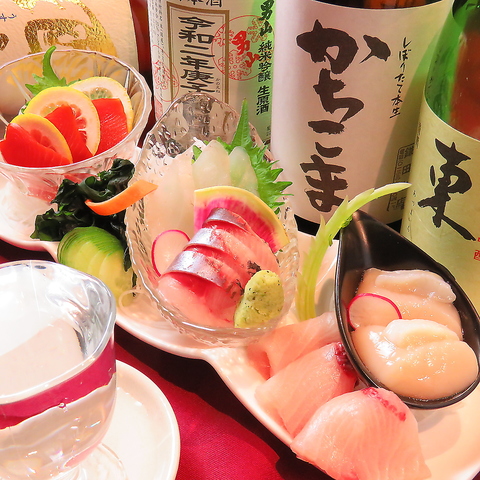 当店でお出ししているお刺身は、旬にこだわった新鮮な魚を使用しております。お造りはもちろん、お寿司や一品料理もご用意しております。お酒との相性も抜群で、お仕事終わりや、ご友人との飲み会にもおすすめです♪