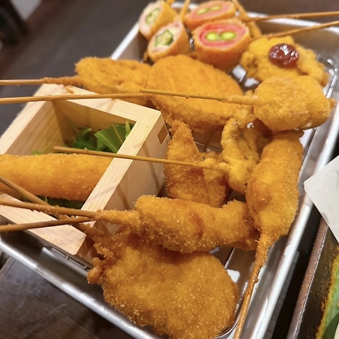 薄衣なパン粉はミリ単位の特注パン粉♪工夫を重ねほんのり甘さが特徴の串かつ♪是非一度ご賞味ください!