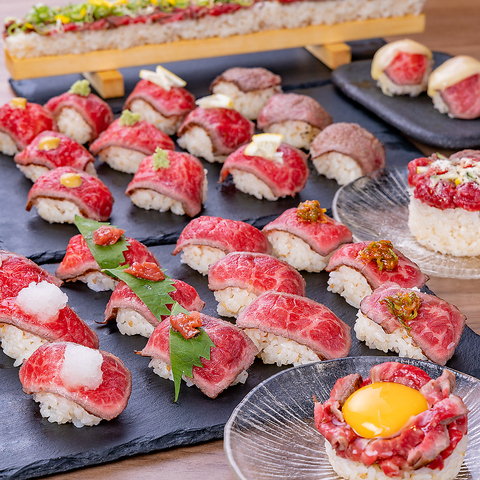 大人気の肉寿司食べ放題が1480円より★ご予約限定でロングユッケ寿司サービス