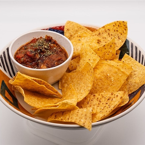 自家製本格チリビーンズ。トルティーヤチップスにのせてどうぞ**チーズと玉ねぎ追加¥150円(税込)