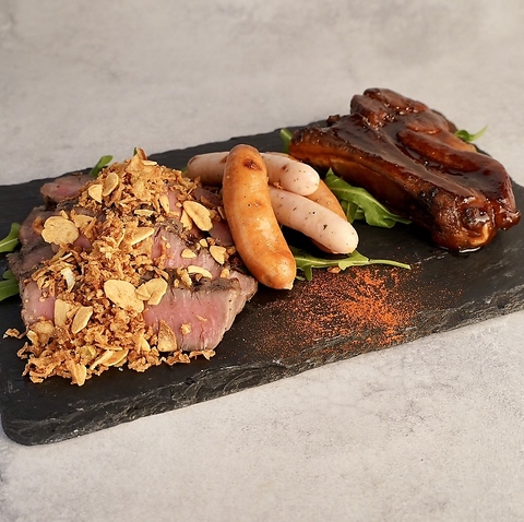 食べ応え抜群のお得で人気のお肉の盛り合わせです!!★選べるソース(お好みでソースをお選びください。ソース追加+1種200円(税込))【オニオンオイスターソース、バルサミコクリーム、デュカ塩、ハニーマスタード】