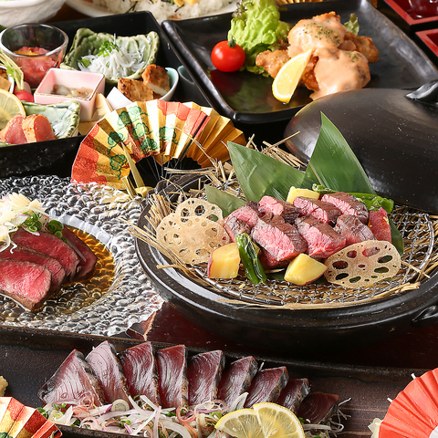 季節の食材を取り入れた」コース料理。しかも飲み放題込・消費税込。5000円、6000円、7000円の3つのプランをご用意。季節やコースによって入る食材は異なります。県産食材、海鮮、肉料理、鍋など宴会にもってこいのメニューが充実