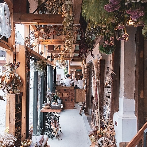【蔵づくりのカフェでゆったりと】明治33年に建てられた蔵を生かした店内は、ドライフラワーの作品が随所に飾られたとても素敵な空間です。蔵×ドライフラワーの相乗効果を是非感じに来てください!