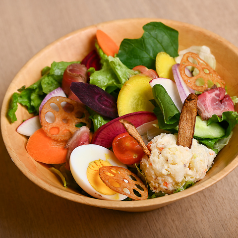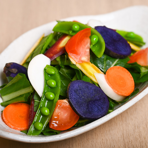 鮮度抜群の新鮮野菜を使用した、こだわりのサラダもぜひお試しあれ。当店でご提供する野菜は、横浜産の旬のもののみ。オーナー自ら農家に足を運び、一番美味しい状態のものを仕入れております。丁寧に生産された野菜は、食材本来の味の濃さが口いっぱいに広がる、まさに"逸品"。その時期の旬のお野菜をサラダやお浸しにて