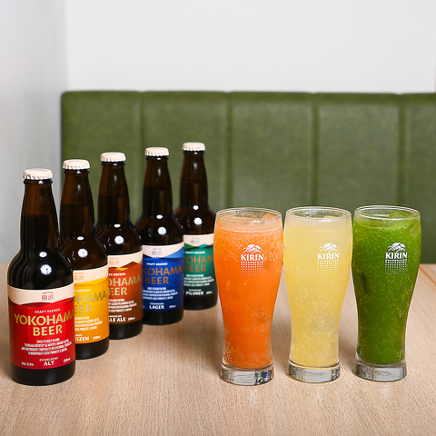 ビール文化発祥の地「横浜」で製造されたクラフトビールを中心に、地元のお酒を多数ご用意しております!小松菜ソーダやクラフトコーラなど、ソフトドリンクも♪