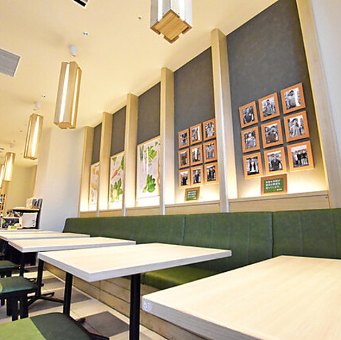 明るく入りやすい雰囲気の店構えにもこだわりました!壁にはその時期の旬のお野菜のイラストを飾っております。野菜についてご質問がある際は、お気軽にスタッフにお声がけください!お仕事終わりの一人飲みやお子様連れなど、どなた様も歓迎いたします♪