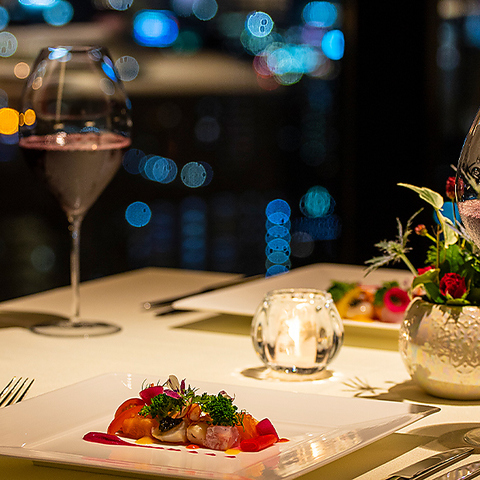 こだわりの食材を使用し、シェフが腕によりをかけて作り上げたフランス料理をご提供いたします。絶景を一望できるお席で贅を尽くした食の演出と受け継がれたおもてなしをご堪能ください。