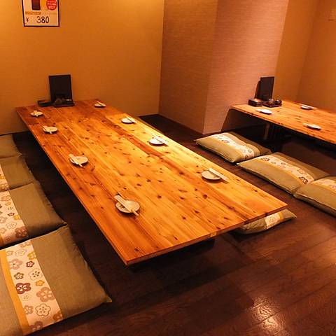 2~26名様程度の少人数でもご利用いただける掘りごたつ席は、4名様×2卓・6名様×2卓の計4卓をご用意しています。会社宴会や普段の飲み会はもちろん、ファミリーでのご利用にもぴったり。お席の間にはロールスクリーンを下ろすこともでき、程良いプライベート感を演出します。さらに、お席を調整し最大26名様までの宴会にも対応いたします。