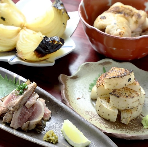 店内でじっくりと焼き上げる、種類豊富な串焼きをご用意しております。新鮮な鶏や牛・豚、海鮮から変わり種まで様々な串焼きがございますのでぜひお楽しみくださいませ。