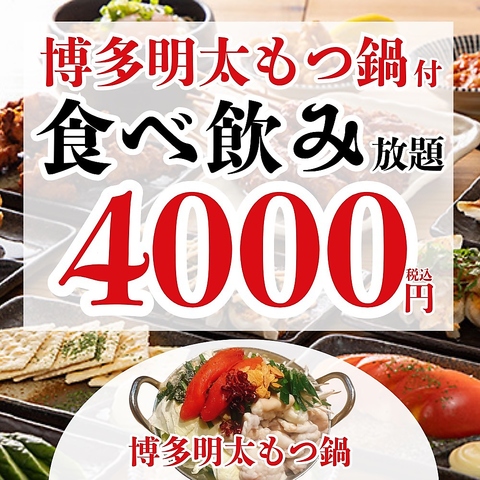 【宴会おススメ】全品食べ飲み放題+もつ鍋食べ放題 2時間飲み放題付 4,000円!
