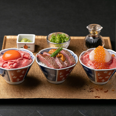 ~食べきりサイズで見た目も可愛い三姉妹の丼ぶりが誕生しました~長女は「つやつや生肉牛丼」こだわり低温調理のA5雌牛と、とろ~り卵のハーモニー♪次女の「ウニ乗せステーキ丼」はA5雌牛ステーキとうにの贅沢な組み合わせ!可愛い三女は「ホタテいくらの生肉牛丼」ぷりっぷりのホタテと弾けるイクラが低温調理の優しいA5雌牛とベストマッチ。