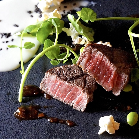 【冬期プラン】口に入れた瞬間とろける黒毛和牛に、醤油ベースの特製和風ソースと、山葵を加えたクリームソースでお召し上がり下さい。この上ない、特別な時間が約束されます。