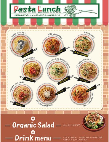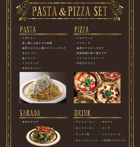 お好きなパスタかピザとサラダ、ドリンク付き