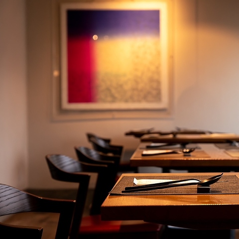 テーブルはゆったりとした配置で、プライベート感を大切にしながら、友人や大切な人との特別な時間を楽しむことができます。美味しい料理を味わいながら、思い出に残る会話をお楽しみください。