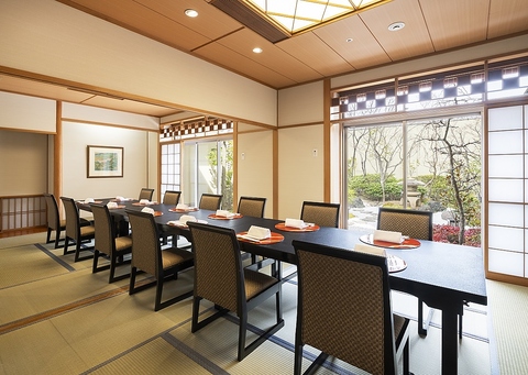 庭の見える個室席は接待や結納、顔合わせにもおすすめです。それぞれのシーンに合わせた会席メニューも豊富にご用意しておりますので、是非ご活用ください。