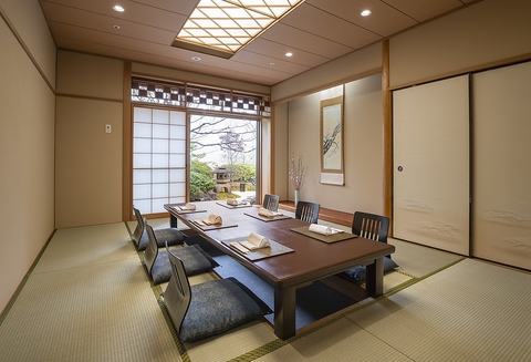 結納やお顔合わせなど晴れの日にぴったりの個室もご用意しております。中庭が見える落ち着いた空間で、大切なひと時をお過ごしください。