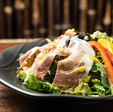 高麗人参や棗などの漢方と鶏ガラを12時間じっくり煮込んだスープ、と岩手県産菜彩鶏胸肉が体に優しく染みわたります。薬膳のベースとなる5色(青・赤・黄・白・黒)の野菜がバランスよく盛り込まれ、食欲をそそります。