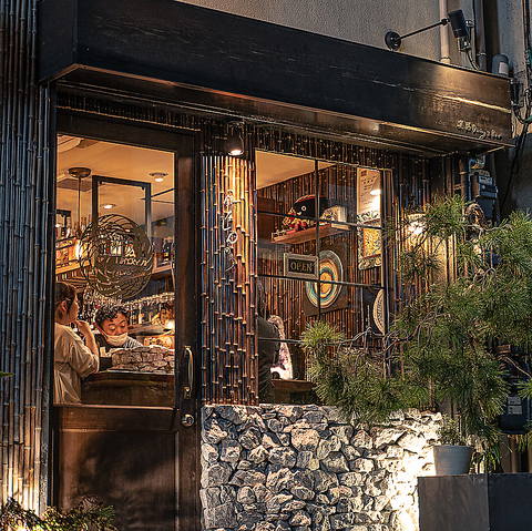 1、2名様でのご利用に黒竹、植物、石を基調とした和モダンな雰囲気のバーカウンター