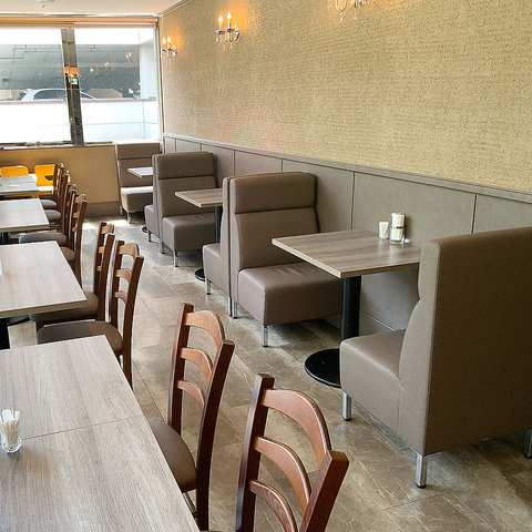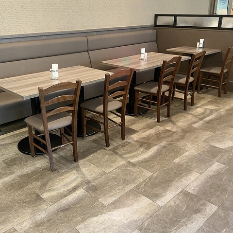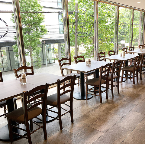 | テーブル | 4名様×9 | 大きな窓のある明るい店内、外を眺めながらゆっくり過ごせる窓側のお席が人気です! |