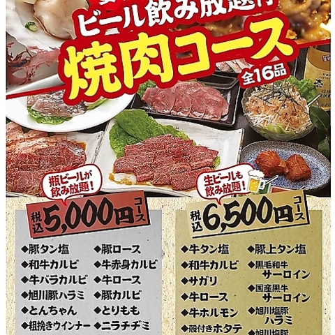 食べ応え、飲み応え満点!放題付き焼肉コース!