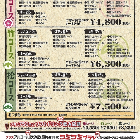 しゃぶしゃぶ,すき焼き,焼肉,もつ鍋から3種類の食べ放題,飲み放題もつけれる、宴会エンターテイメント!