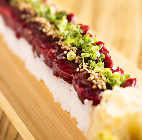 極上の馬刺しを贅沢に使用した、特製すき焼き風の桜ユッケです。甘辛い割り下の旨みが馬肉のまろやかなコクと絶妙に調和し、口に入れた瞬間にとろけるような食感を楽しめます。素材本来の良さを引き立てながら、ユッケならではの濃厚な味わいを堪能できる一品です。