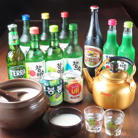 韓国系のドリンクも豊富に取り揃えております!チャミスル、マッコリ、ソフトドリンクも大好評!