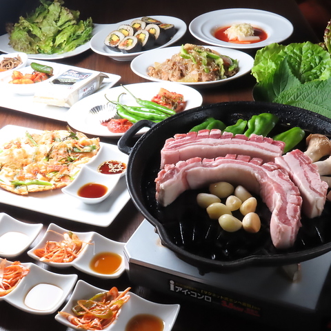 大人気のサムギョプサルやチジミ、選べるスンドゥブ、ヤンニョンチキンなどが食べられる大満足コース!ゆっくりとお食事を楽しみたい方におすすめ!混雑時を避けたいお客様は比較的落ち着いている曜日でのご予約をご検討下さい!月・火・木曜日のディナー時間は店内が比較的落ち着いており、料理、ドリンクの提供もスムーズ