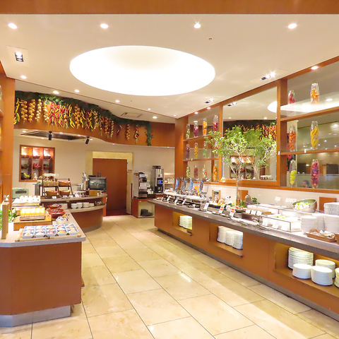 落ち着いた雰囲気の中で、ランチをお愉しみいただけます。栄養バランスに優れた地元の野菜をふんだんに取り入れたサラダバーや、旬の食材を使ったシェフオススメのメインディッシュ、店内で香ばしく焼き上げた豊富なパン、大人気のホテルパティシエのデザートなど、約40種類のメニューをご提供しております。