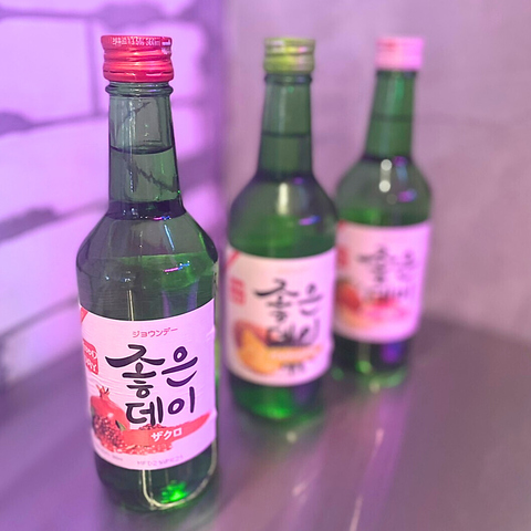| 韓国焼酎【通常料金の半額】 | チャミスル(プレーン・マスカット・ピーチ・ストロベリー)/ジョウンデー(ザクロ・パイナップル) 各440円(税込) |
