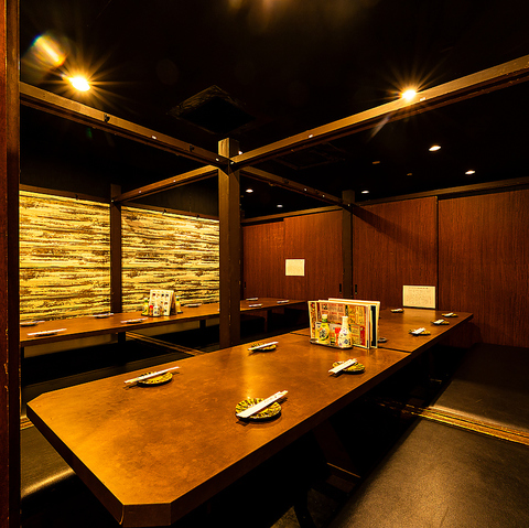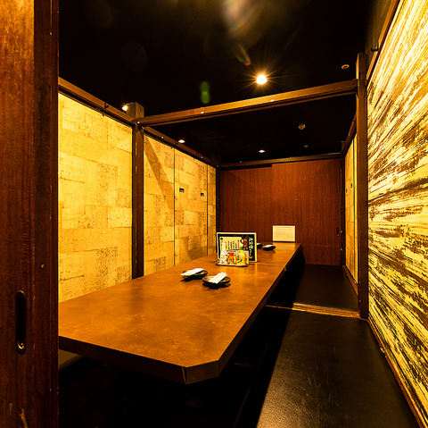 当店では、ゆったりとお寛ぎいただける広々とした個室席を完備しております。扉付き完全個室となっておりますので、大事な接待や会食などにもおすすめです。プライベートはもちろん、ビジネスシーンまで幅広くご利用いただけます。