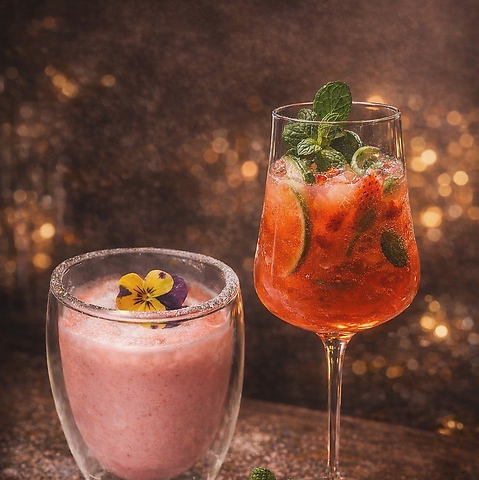 写真は左が「夜風の苺ミルク」右が「苺とミントのモヒート」本来のモヒートや苺ミルクとは格段に違いヨルカゼならではのオリジナル!その他多くのオリジナリティー溢れるメニューが楽しくなるメニューラインナップ