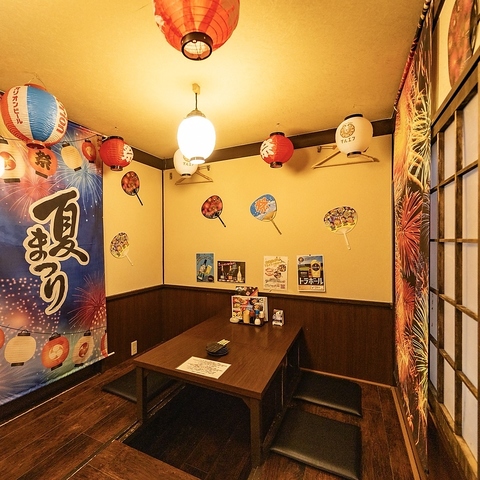 季節宴会ルーム♪季節によって装飾が変わります!!6名様~8名様≪各種ご宴会に★≫ご友人同士の飲み会や会社宴会にお勧め!◎各種飲み放題付コースもご用意しておりますので、シーンに合わせてご利用下さいませ!喫煙可能な完全個室です。